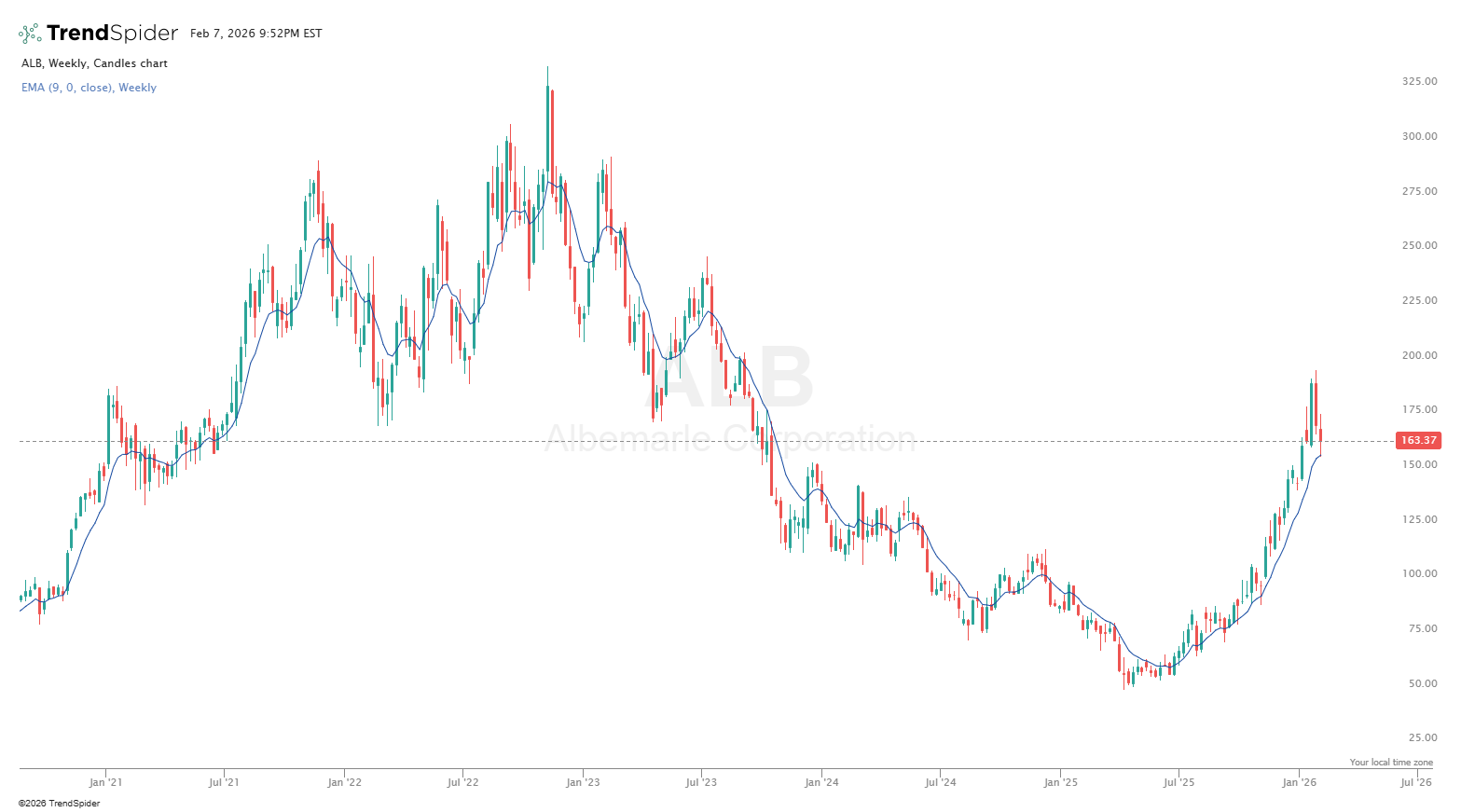 Lithium producer Albemarle has been on a tear in the past few months but came down in recent sessions, and it could be a dip buy.